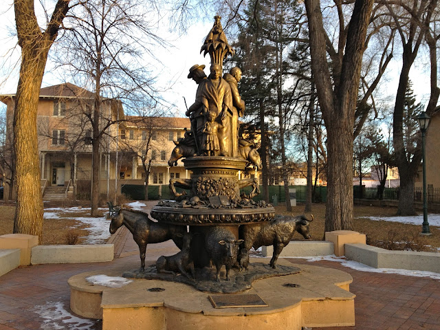 Santa Fe lies 50 miles south of Ojo Caliente. I arrived there in the early afternoon and first visited a Trader Joe's to stock up on snacks. I found Santa Fe's outskirts to be seedy and boxy, but the downtown of Santa Fe itself is a remarkable place. It's composed entirely of low-lying, adobe structures resulting in an architectural landscape foreign to anything I've seen before. The closest equivalent I could come up with the was Star Wars desert planet of Tatooine.